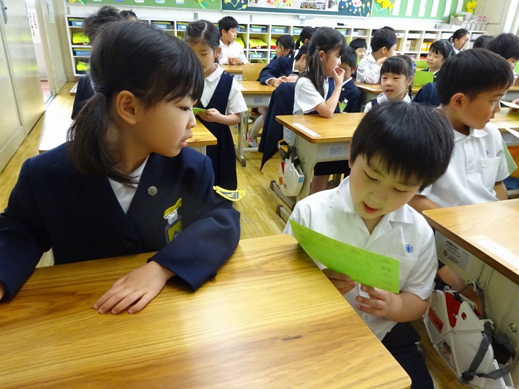 先週、2年生が学校探検につれていってくれました。1日に招待状をもらってから、指折り数えてこの日を楽しみに待っていました。