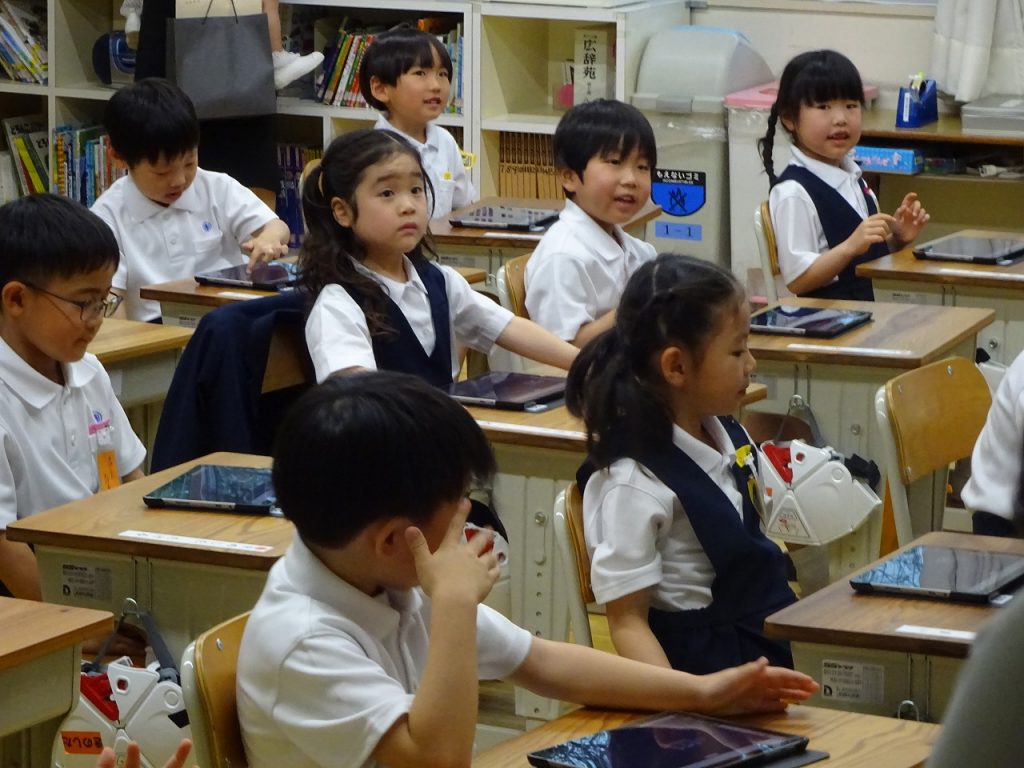1年生はタブレットの使い方や、パスワードを他人に教えないこと、複数台で使わないことなどを、一緒に確認しながら学びました。 他の学年は国語・算数の授業や、入り込み授業として専科教員の授業などを行っていました。どの学年の授業もそれぞれの良さがあり、各学年ともに学びを深めることができました。
