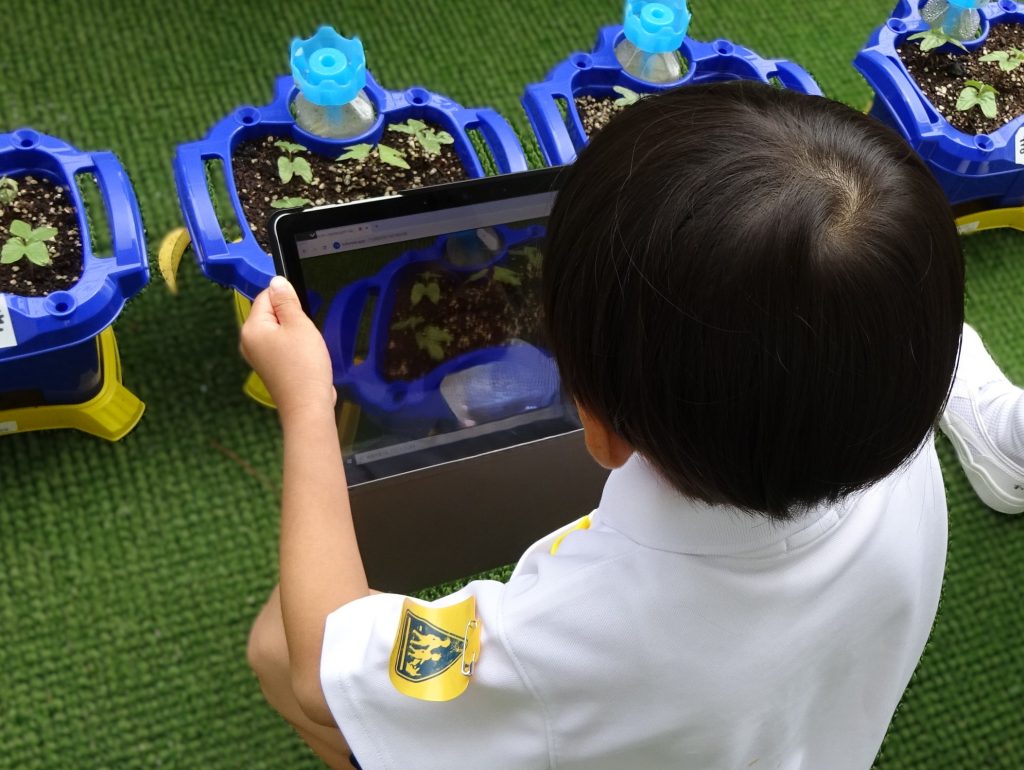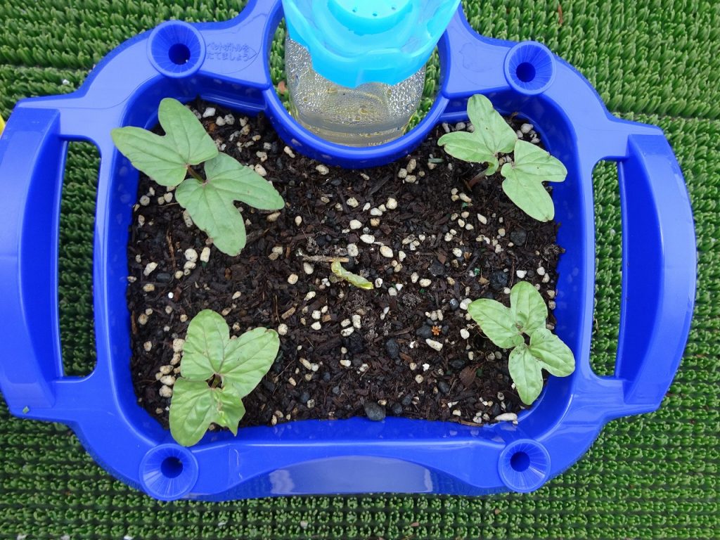 「めがでた!!」「4つ、めがでてるよ!」朝からベランダに大きな声が響きます。先週まいた、アサガオの芽が出てきました。先週末に少し顔をのぞかせていましたが、今日は皆揃って、たくさん芽が出ていました。さっそくタブレットで写真を撮りました。「上から見ると、葉のかたちが分かるね。」「ちょうちょににてる。」「ハートのかたちだ。」「横から見ると、くきの色のちがいが分かるよ。」などと、発見したことを伝え合いながら、楽しく写真に収めていました。これから少しずつ写真が増えていくことでしょう。素敵なアサガオのアルバムを作ろうね。