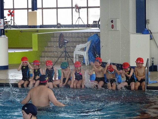 水泳実習を終えた子どもたちからは「楽しかった。」や「次はいつ?」と、もう次の実習が待ち遠しい様子でした。次も楽しく実習しようね。コーチの皆さん、よろしくお願いいします。