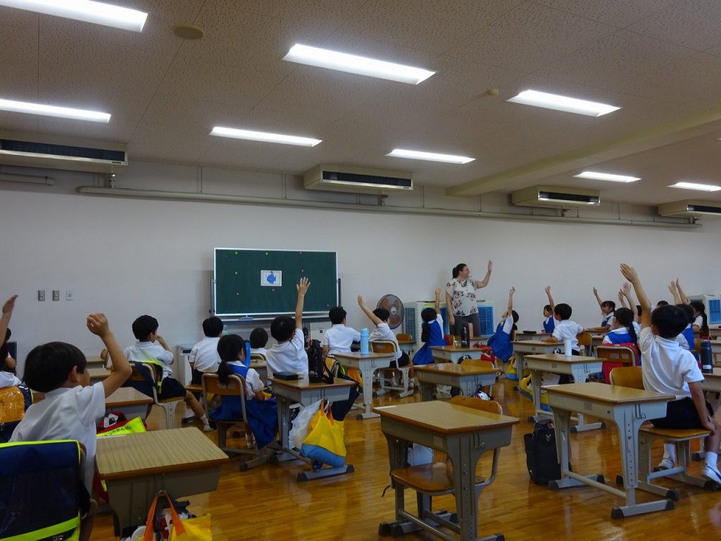 本日は夏休み預かり教室特別教室1日目。徳島文理大学から、ガリ・ダニエル・エム先生にお越しいただきました。今回は、「英語を使って楽しく遊ぶ」教室を開いていただいきました。いつもは、5~6年生を教えてくださっている知っている先生なので、子どもたちも、とても、わくわくしていました。