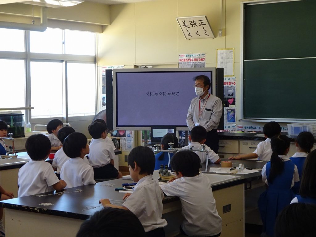 本日は、文理大学から藤岡先生と補助の先生をお招きし、楽しい科学教室をしていただきました。