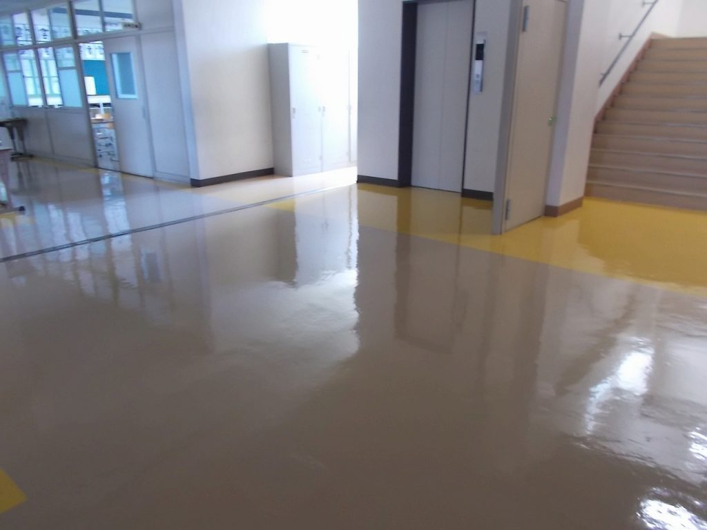 見違えるように、きれいな床になりました。暑い中、休日にも作業を続けていただいた業者の皆様、本当にありがとうございました。