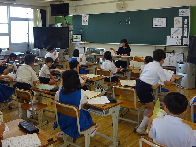 約2週間の夏休み、毎日30度を超える暑さの厳しい日々でした。その中で取り組んだ夏休みの課題を持って、子どもたちは元気よく登校してきました。