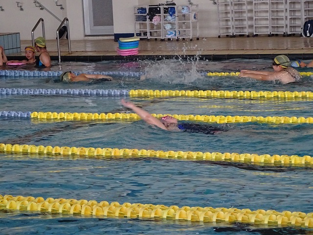 1メートルでもたくさん泳ぎたい、1秒でも速く泳ぎたい、という強い思いから子どもたちの実習への意欲は大変高いものがあります。3回と数少ない実習ですが、この実習を通して子どもたちは、泳力だけではなく、頑張る気持ち、難しい課題にどのように取り組めばよいのかという考える力も学び、身につけていきます。