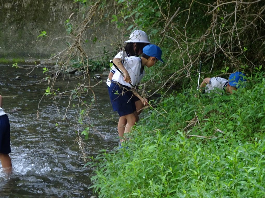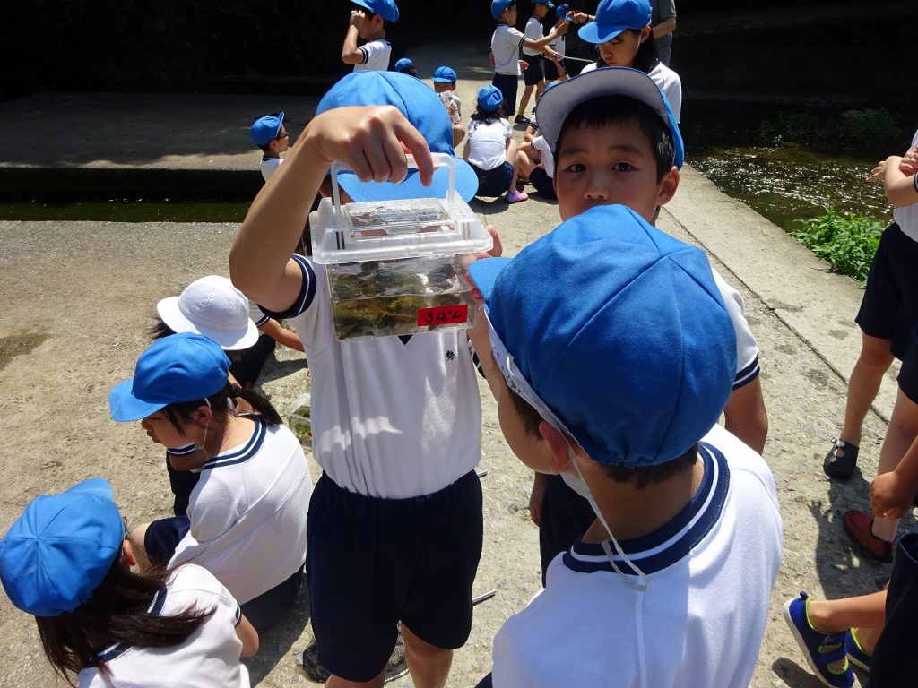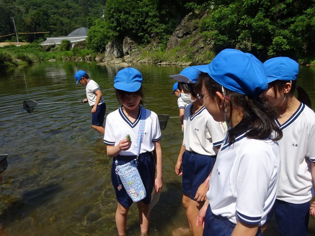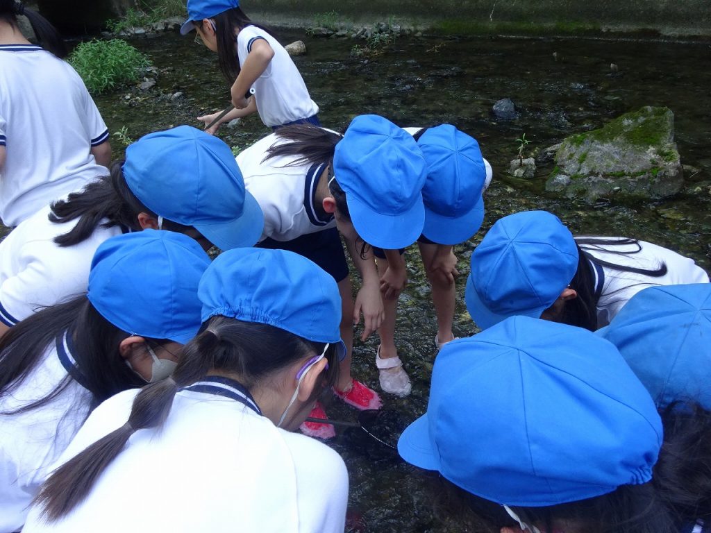 本日、4年生が校外学習に行ってきました。今回は、佐那河内村にある、川に行って来ました。実際に、川に入りどんな生物がいるのかを、網でつかまえて観察しました。「あそこにおるよ」や「これなんだろう」とコミュニケーションを取りながら行っていました。