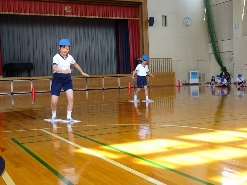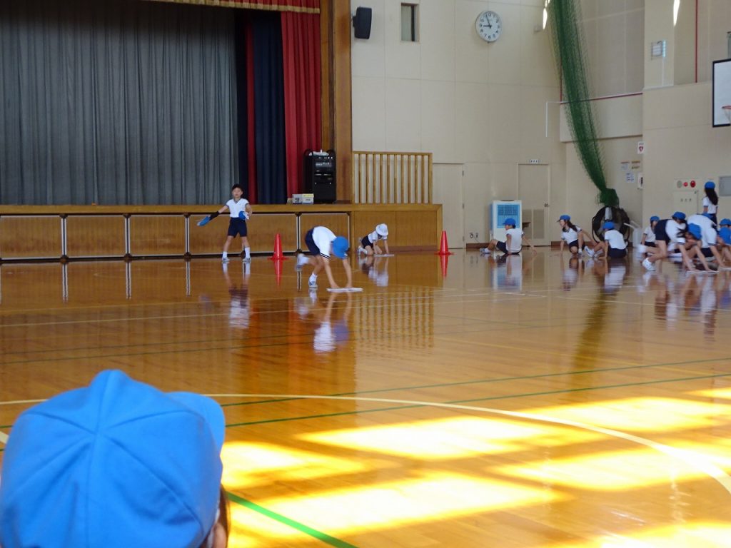 本日、4年生の合同体育で文理ンピックを行いました。本日の種目は、「20mぞうきん」と「ぞうきんすり足」でした。