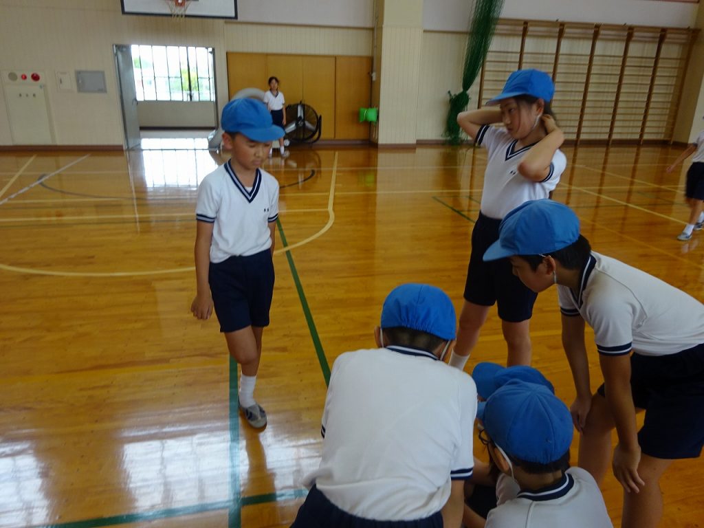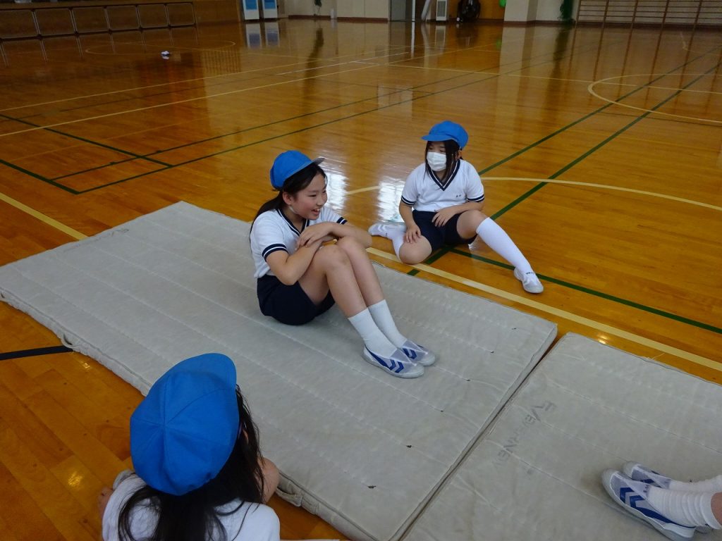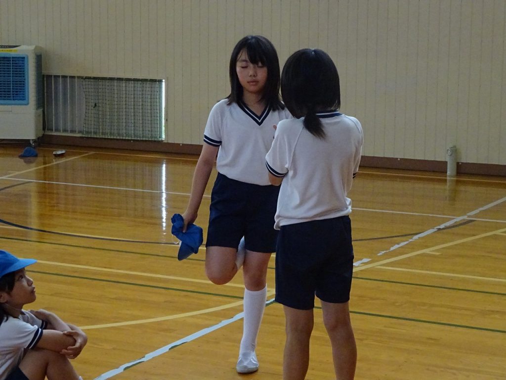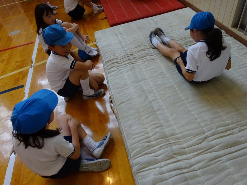 本日、4年生が「片足立ち」と「早寝早起き1分間」を行いました。