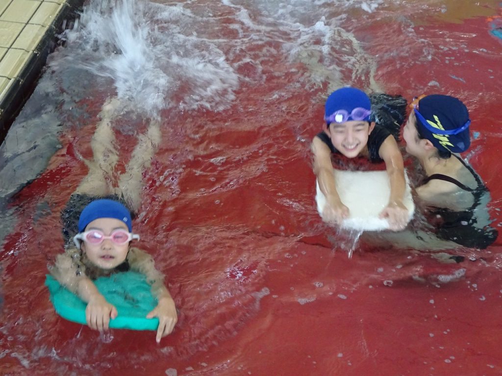 水泳実習の回を重ねる度に、「〇m泳げるようになった!」と、距離がどんどん伸びていった子がいたり、最初は水が苦手だった子も、どんどん水に慣れてきて、笑顔いっぱいで楽しんでいたのが印象的です。