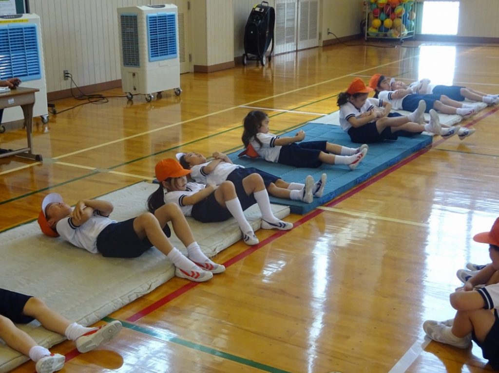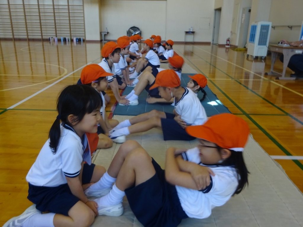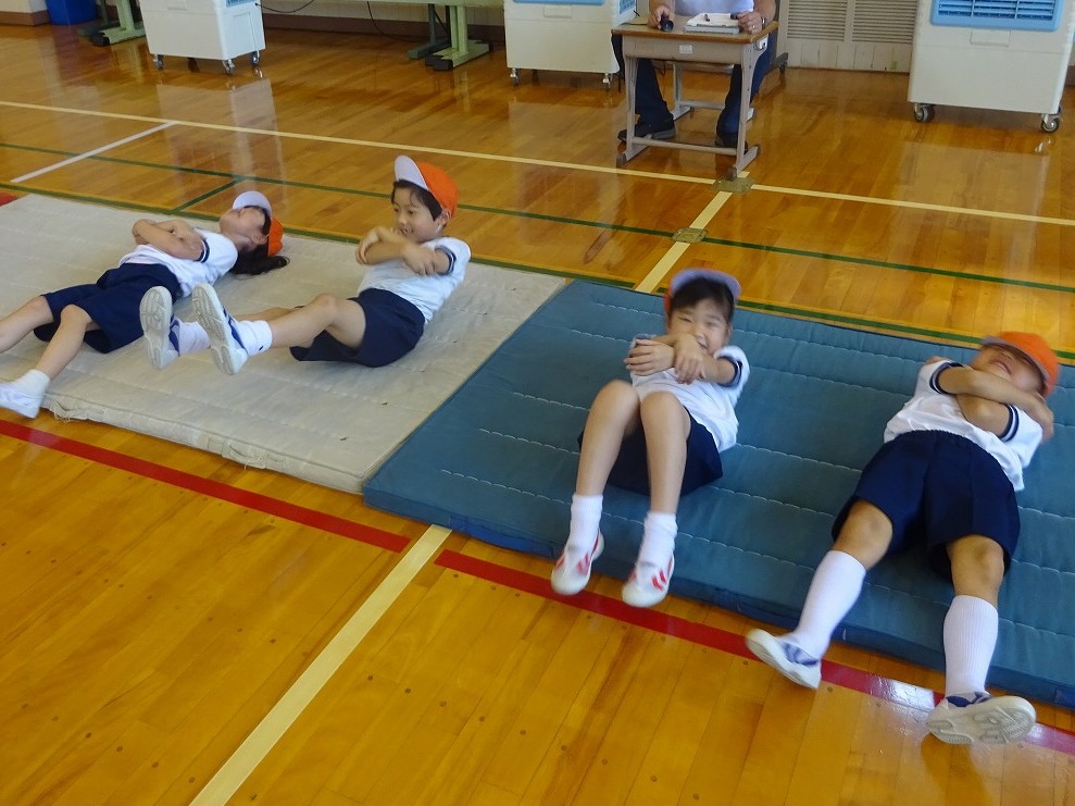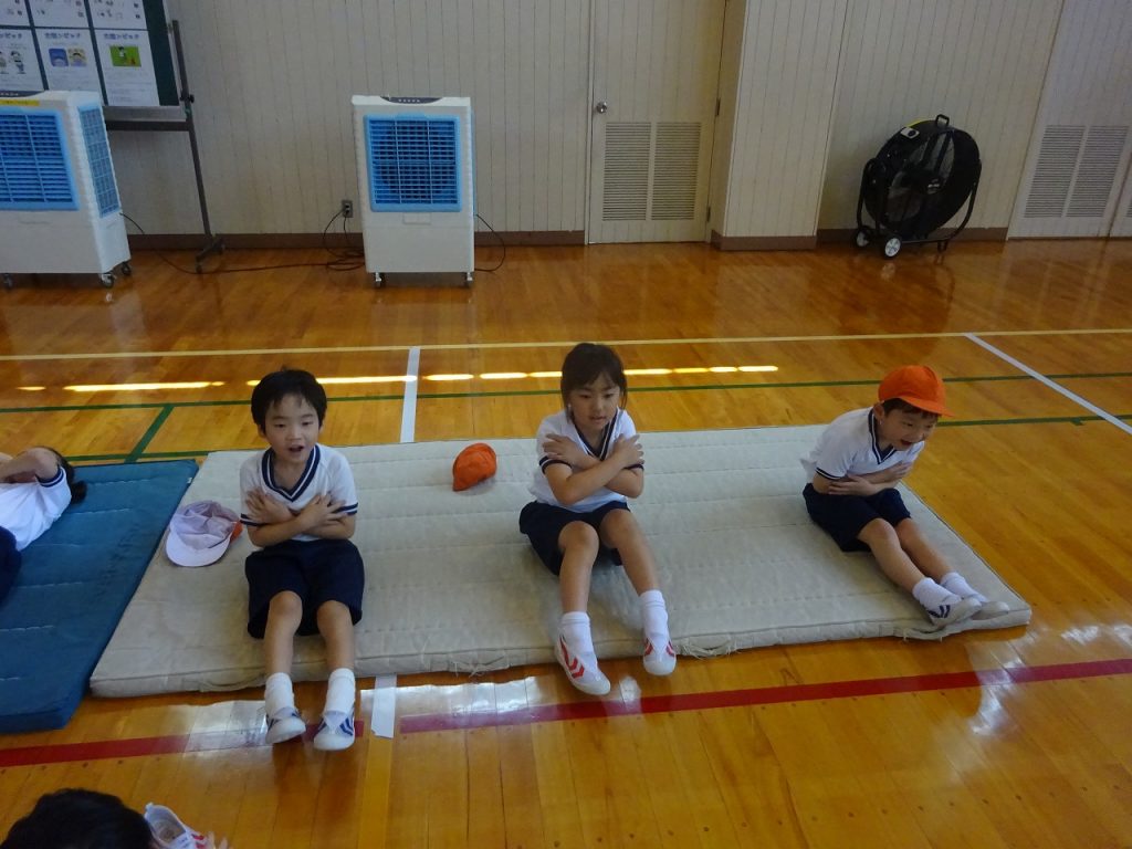 いざ、やってみると、手を使わずに起き上がることにみんな苦戦しています。それでも、「おはよう!」「おやすみ!」と元気に言いながら、一生懸命頑張っていました。