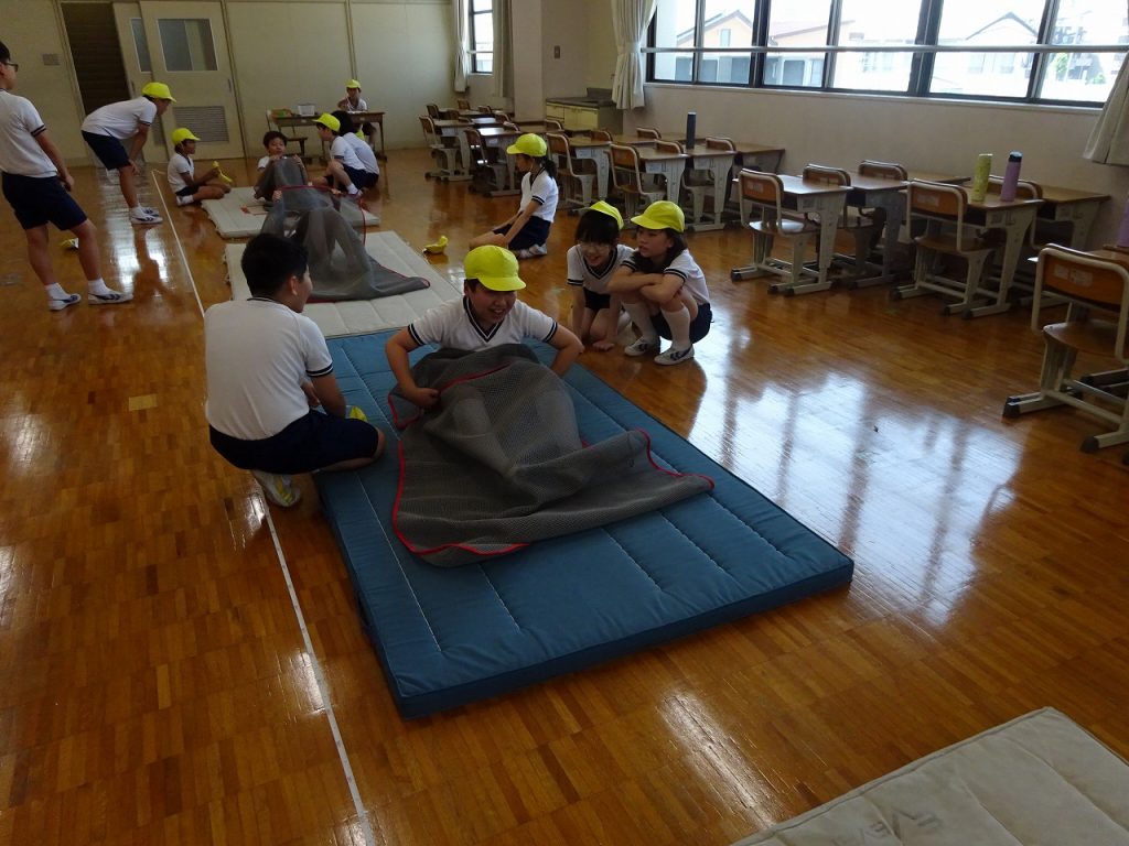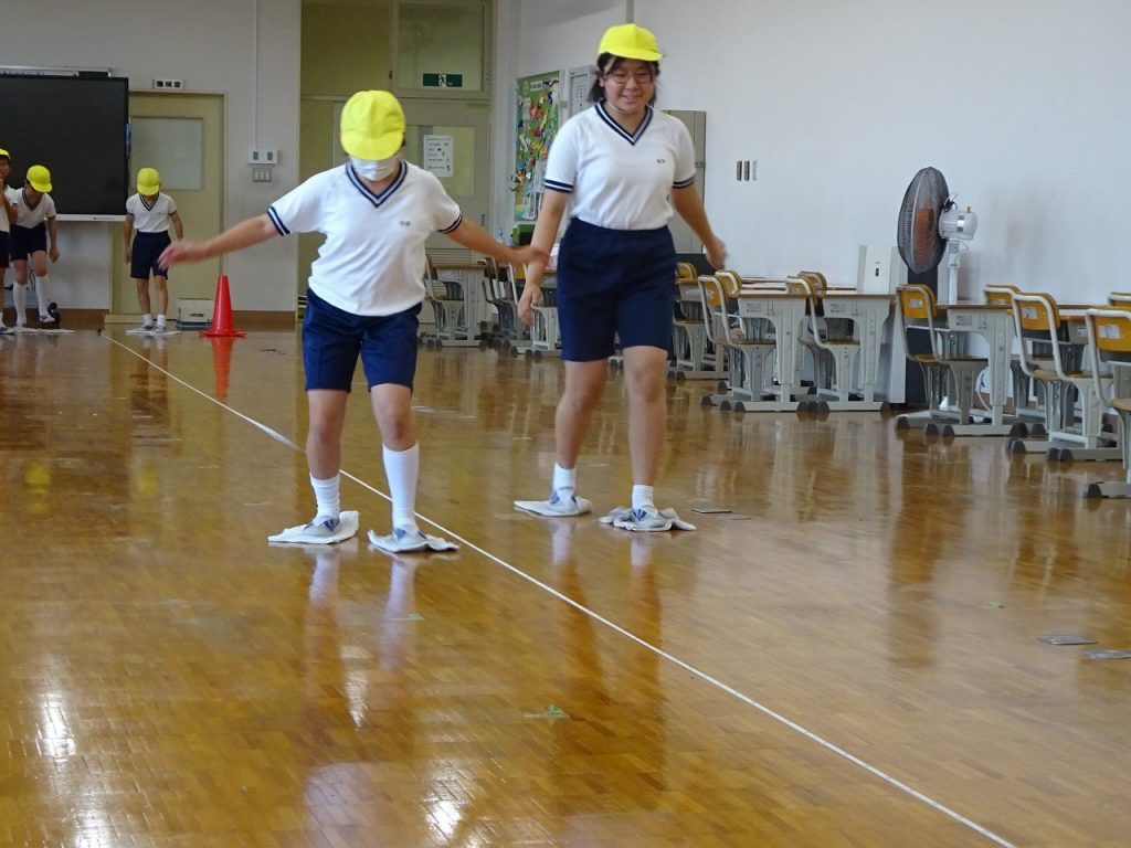 本日、5年生の文理ンピックを行いました。体育館が暑かったため、自由活動室で行いました。本日の競技は、5年1組が「早ね早起き」、5年2組が「ぞうきんすり足」と「早ね早起き」でした。