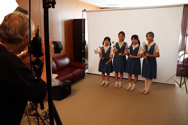 本日、村崎学園創立130周年記念で掲載していただく新聞広告の写真撮影がありました。広告は7月19日の徳島新聞に掲載予定です。