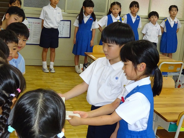 年長のみなさん、暑い中、小学校に来てくださってありがとうございました。 次の交流も楽しみにしています。