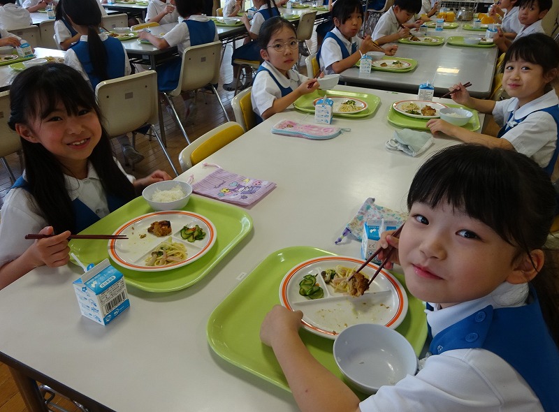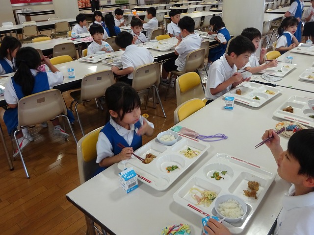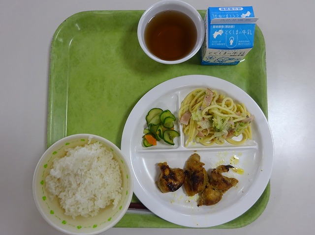 トピックス 1学期最後の給食 HOME > トピックス > 1学期最後の給食 1学期最後の給食 2025年7月17日 本日は1学期最後の給食でした。メニューは、ごはん、タンドリーチキン、豆乳スパゲティ、胡瓜の塩昆布和えでした。 子どもたちは、おいしそうに1学期最後の給食を食べていました。 2学期の給食も楽しみですね。