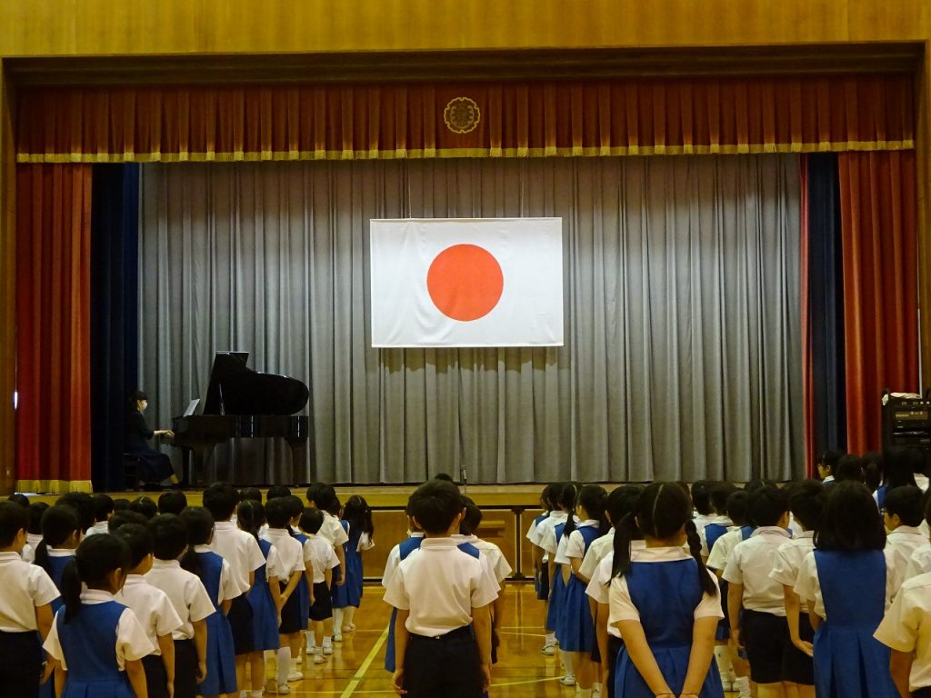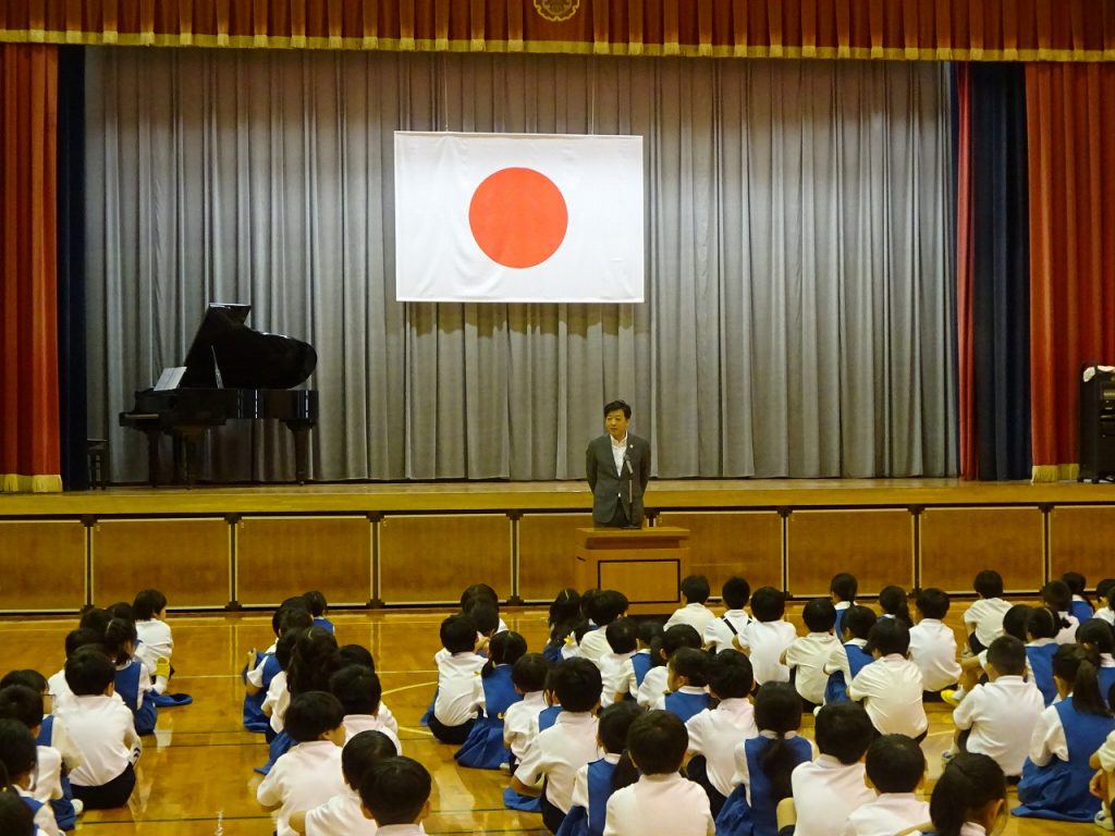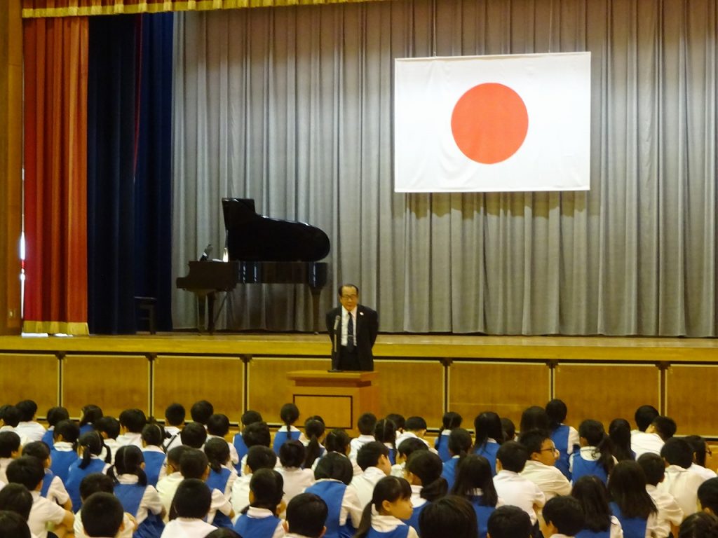 次に、理事長先生からは、1学期は楽しかったという子どもたちの返事を受けて、私は学校が楽しかったと思ってもらえることが一番うれしいというお話から始まり、長い夏休みを事故なく元気に過ごして、9月1日に元気な姿でみなさんに会いたい。そのためにこの44日間を、いっぱい勉強して、いっぱい遊んで、いっぱいお手伝いをしてほしいと思いますというお話でした。また、今年は村崎学園創立130周年というお話もありました。8月12日にはホームカミングも行われます。