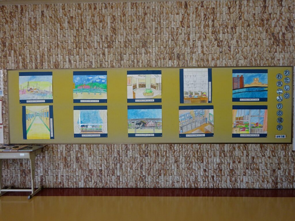 自分の学校のお気に入りの場所を描いています。6年生にとっては、絵にかいたお気に入りの場所で過ごすことができるのも残り数か月です。いろいろな思いを込めて描きました。