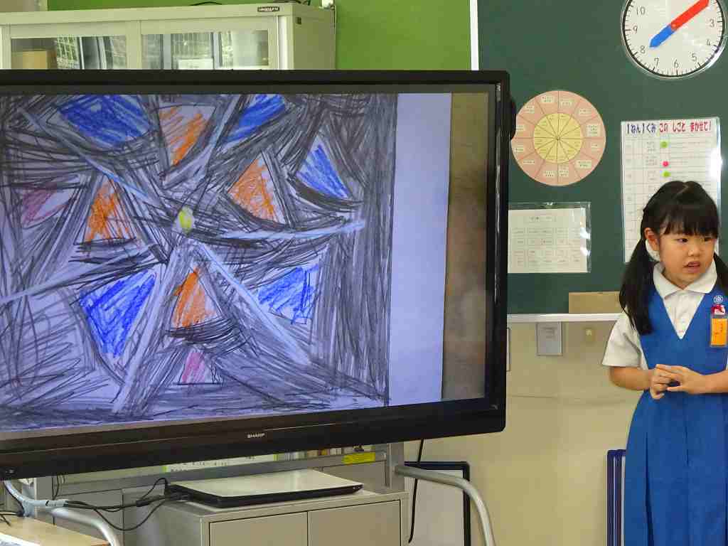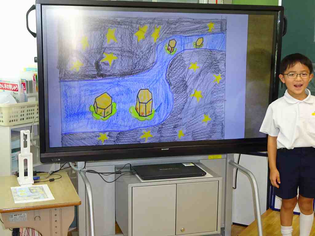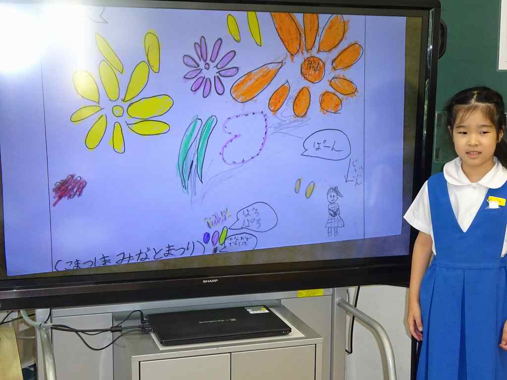 新学期始まってから、毎日数人ずつ、夏休みにしたことを友だちに紹介しています。聞きやすい大きさの声と速さで話すことを意識して発表します。「きんちょうするなあ。」と言いながらも、みんなの前で自分の体験を発表できていました。また、友だちの話を聞いて、興味をもったことやもっと聞きたいことを質問したりしました。1学期に比べて、上手な受け答えもできるようになっています。とても楽しい発表会になりました。2学期も楽しい思い出をたくさん増やそうね。
