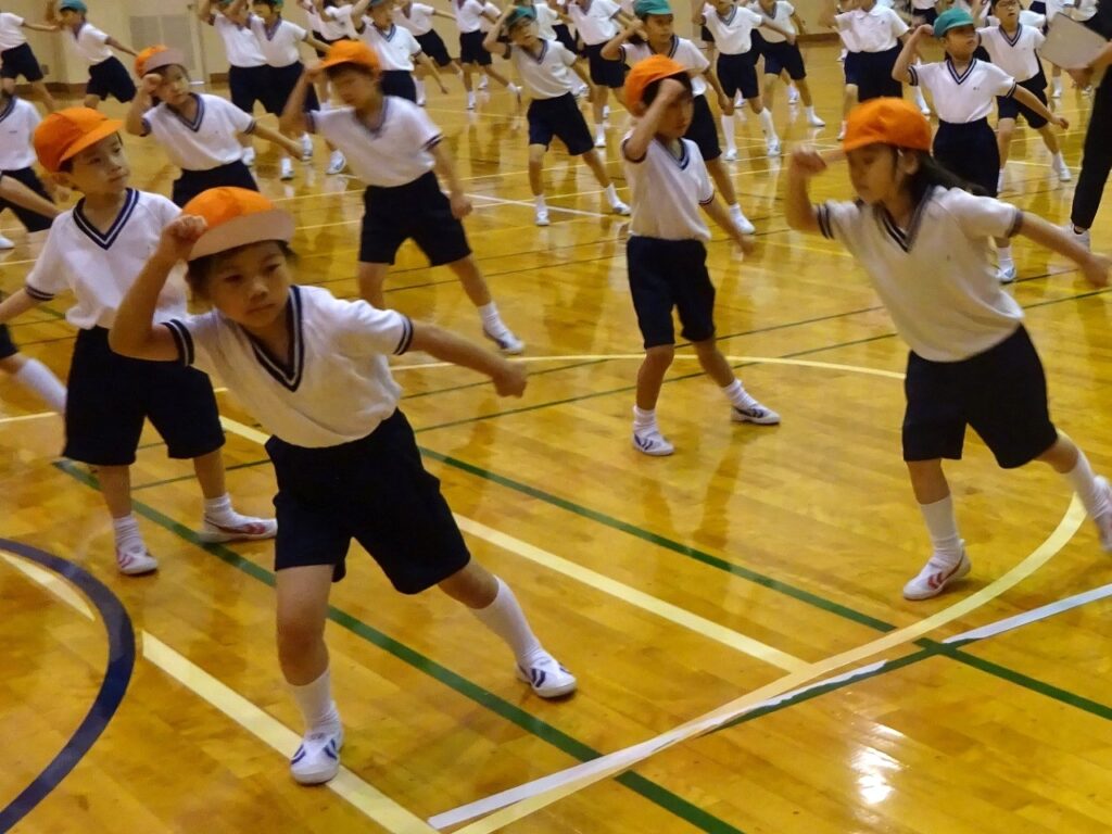1・2年生は2学年合同でダンスの練習をしました。細かい振り付けやポイントを一緒に確認し、曲に合わせてダンスをしました。先生のお話をよく聞き、集中して練習ができていました。