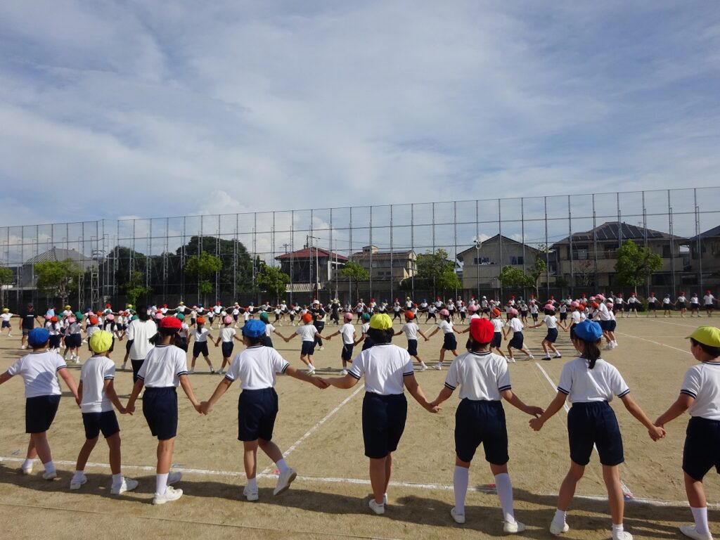 本日の全校練習は、マイムマイムと開閉会式の練習をしました。全校で円になりマイムマイムを踊ったり、開閉会式での礼のタイミングを練習したりしました。