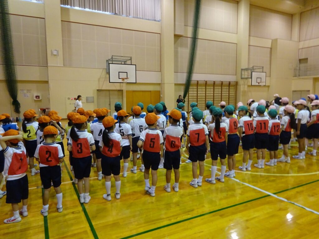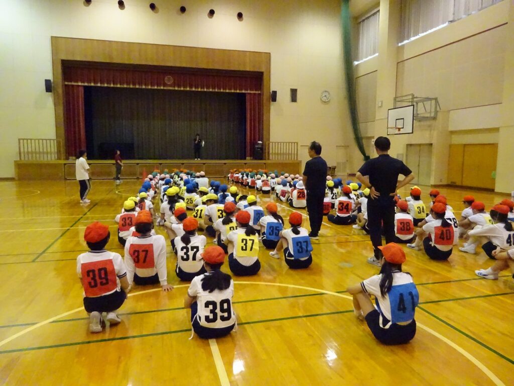 本日の全校練習は、リレーの練習をしました。運動場で本番と同じ形で練習を行う予定でしたが、直前に雨が降ったため体育館で行いました。