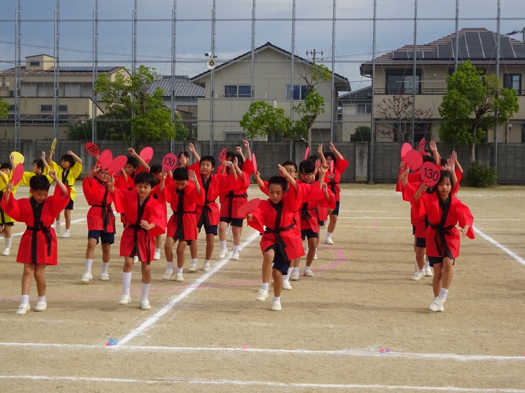低・中・高学年それぞれが全校生の前でダンスを披露しました。低学年は、しっかり覚えたダンスを元気いっぱいに踊っていました。中学年は、阿波踊りをかっこよく踊っていました。高学年は、全員で協力して動きを揃えたパフォーマンスを披露してくれました。