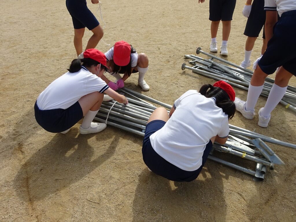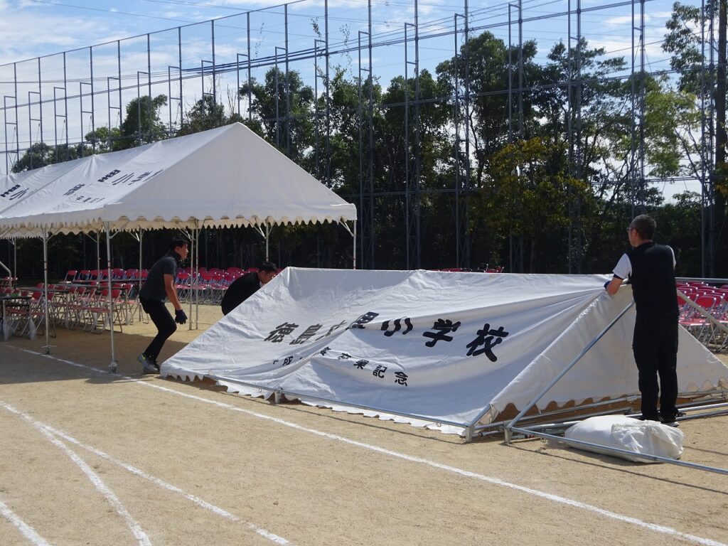 本日、保護者の方にも協力していただき運動会の前日準備を行いました。5・6年生の子どもたちもテントや椅子を出す作業を手伝ってくれました。