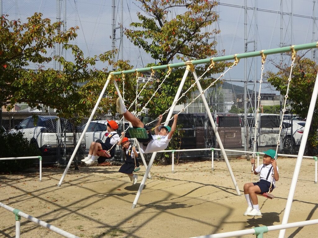 10月に入って涼しくなり、外で遊びやすい気候になってきました。休み時間になると外へ行き、遊具で遊んだり、鬼ごっこやボールで遊んでいる子どもたちもいます。