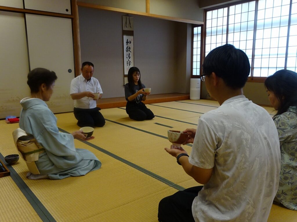トピックス 全校茶会に向けて(教職員研修) HOME > トピックス > 全校茶会に向けて(教職員研修) 全校茶会に向けて(教職員研修) 2025年10月8日 本日、全校茶会に向けての職員研修を行いました。毎年お世話になっている井手先生に、茶道の作法や今回のお茶会の流れについてご指導いただきました。