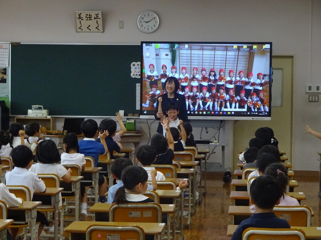 体験授業では、英語の授業とタブレットを使った活動を行いました。英語の授業では、動物やものの名前をみんなで言ったり、歌を歌ったりして楽しく学習しました。タブレットを使った活動では、色つきペンの写真を撮り、それに色々な絵を描きました。1年生のお兄さんお姉さんと一緒に、楽しそうに活動していました。