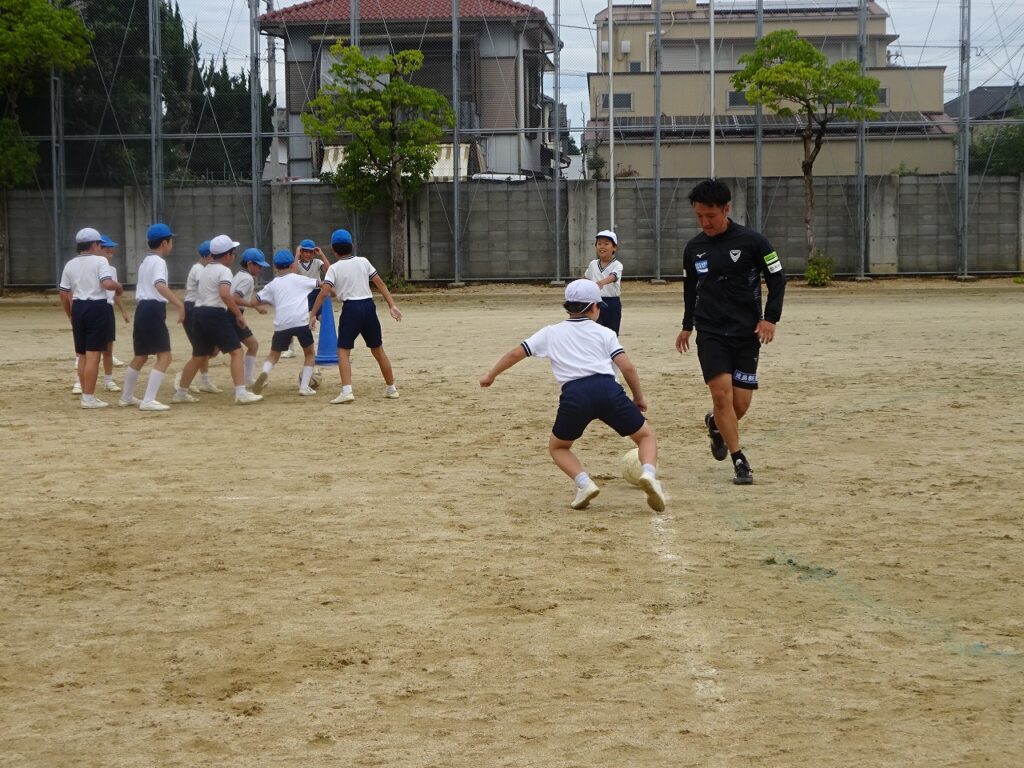 本日は徳島ヴォルティスの方にお越しいただき、3年生と4年生を対象にサッカー教室を開催していただきました。