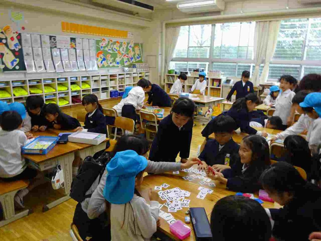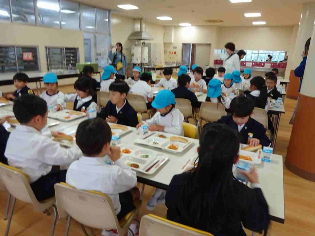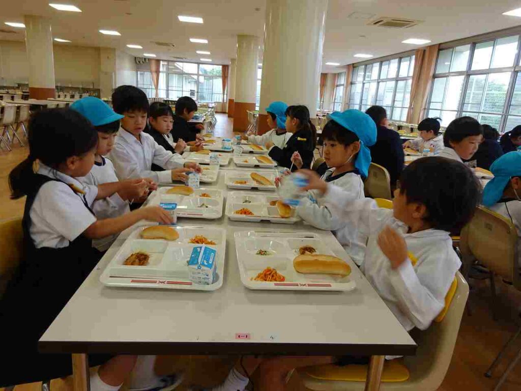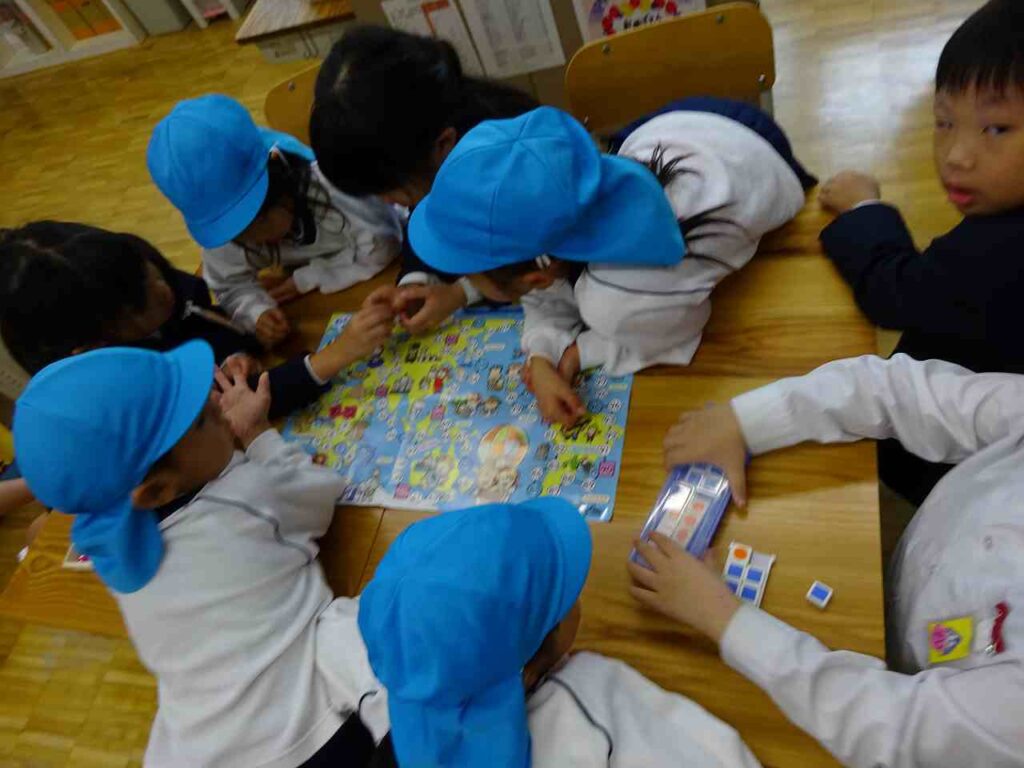 今回は、ランチを一緒に食べました。ドックパンにいろいろなものをサンドして楽しめるメニューです。「おいしいね。」「やさいをはさんだよ。」と顔を見合わせながら、どの子も嬉しそうに食べていました。食後は、教室でみんなでゲームをして遊びました。すごろくをしたり、数字カードでゲームをしたり。『秋をみつけよう』で見つけた木の実を紹介したりする子どももいました。幼稚園のお友だちが喜んでくれている様子を見て、1年生も嬉しそうでした。