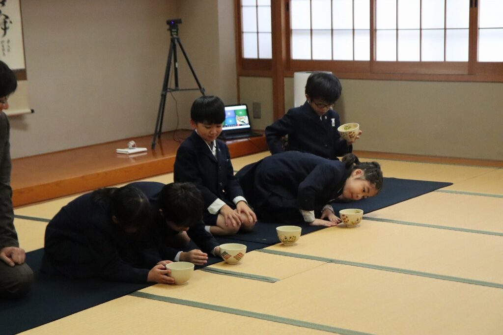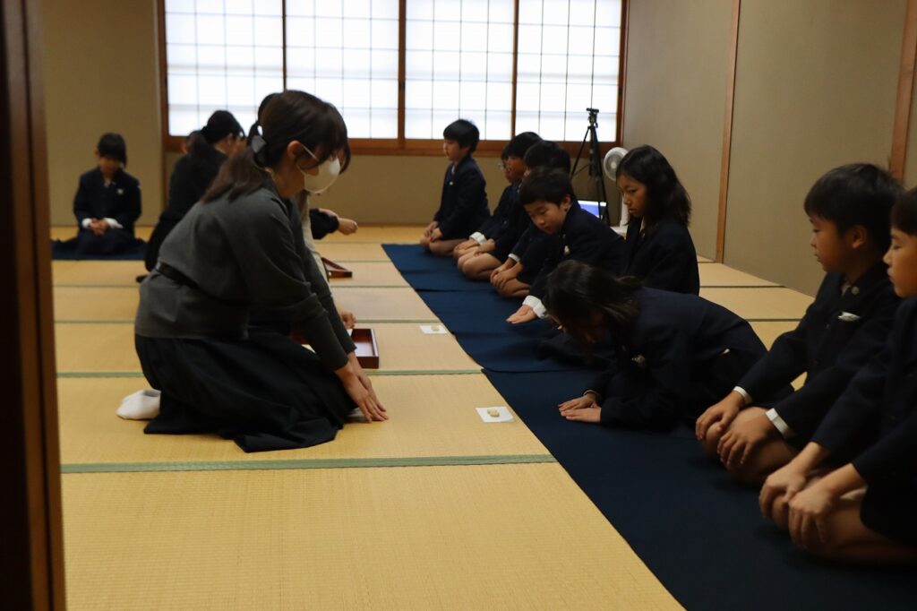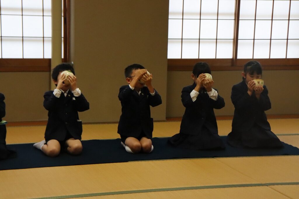 2年生は、今回で2回目のお茶会です。始まる前は少し緊張している子もいましたが、練習したお作法を上手にすることができていました。おいしいお茶とお菓子をいただき、お茶会後には「楽しかった!」と笑顔を見せてくれました。とても落ち着いてお茶会を楽しむことができました。