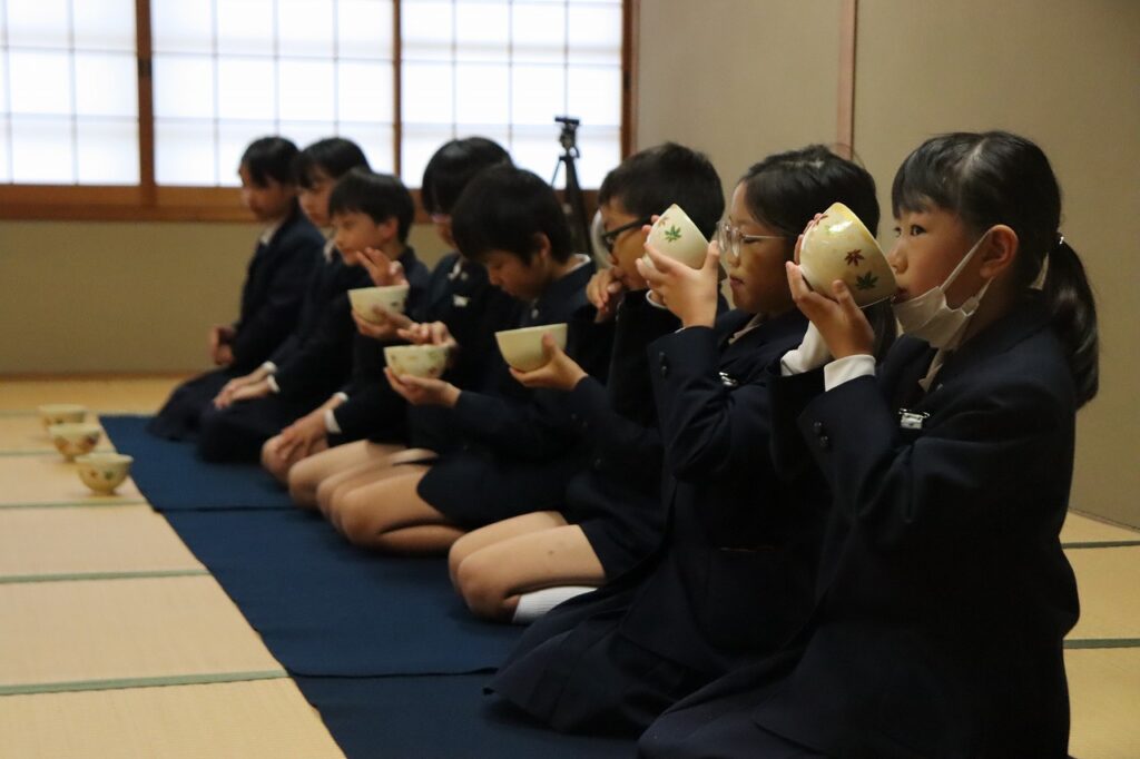 4年生は、もう4回目のお茶会です。始まる前に「ちょっと緊張する。」と言っていた子もいましたが、いざ始まってみると、お茶会の落ち着いた雰囲気を楽しめていたようでした。