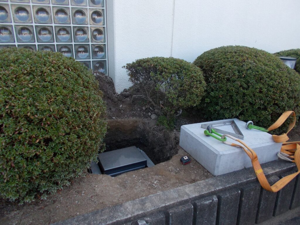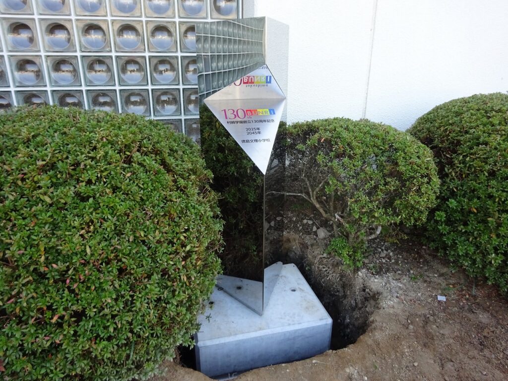 村崎学園創立130周年記念のタイムカプセルを埋めるために、本日業者の方々が作業に来てくださいました。また、タイムカプセルには水や土が入らないよう、加工を施してくださっています。