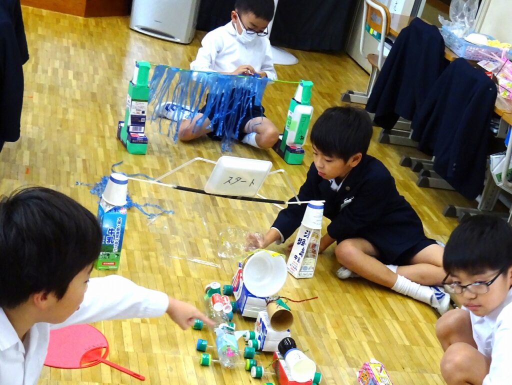 1年生に楽しんでもらえるように、みんな工夫を凝らして楽しいおもちゃ作りに取り組みました。飾り付けも、よりワクワクするようにアイデアいっぱいです。