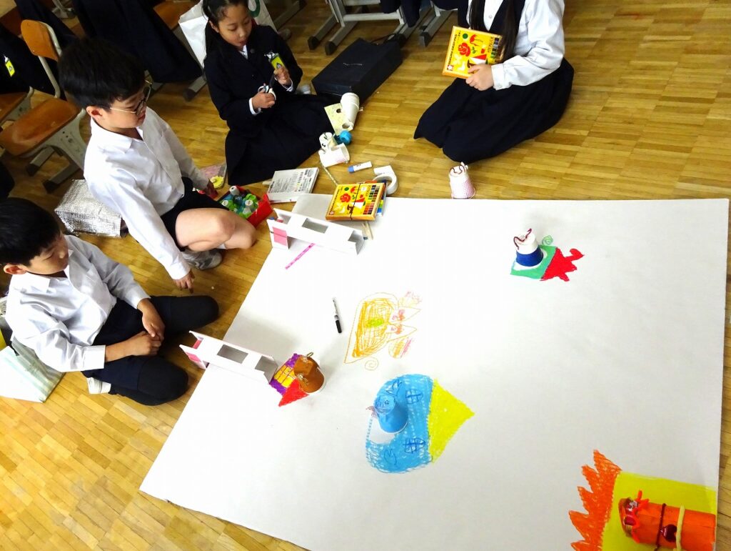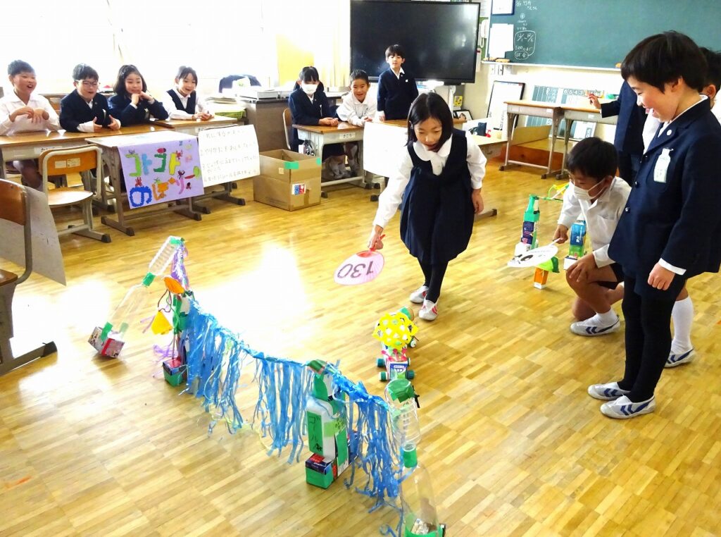 おもちゃが完成したら、遊び方やお世話の仕方をみんなの前で発表し、実際にやってみました。やってみることで、「どう説明すると分かりやすいか」や「もっとこうした方がいい」という改善点が見つかり、しっかり直して仕上げました。