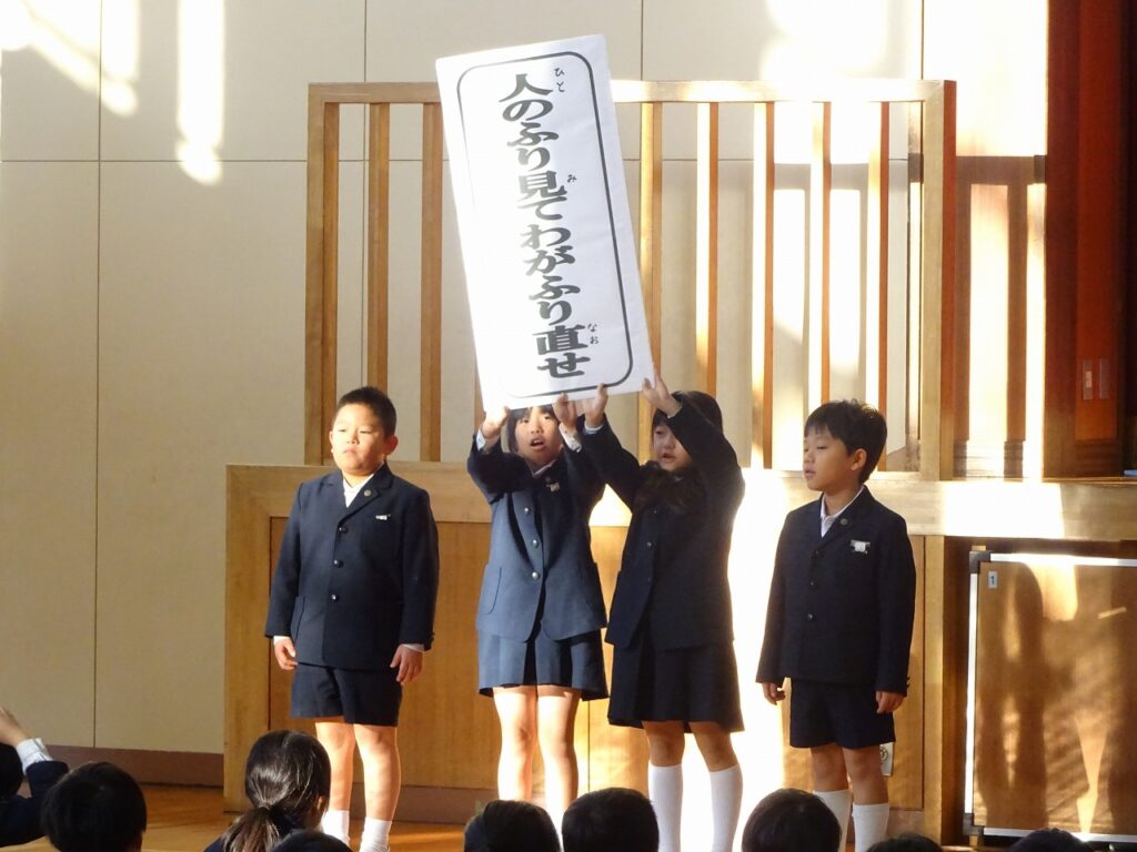「悪いところは直そう、いいところはまねしよう!」「うわさ話にはまどわされないようにしよう!」「積極的に行動していこう!」など、格言から得た学びも発表していました。どのグループも大きな声ではきはきと発表することができました。