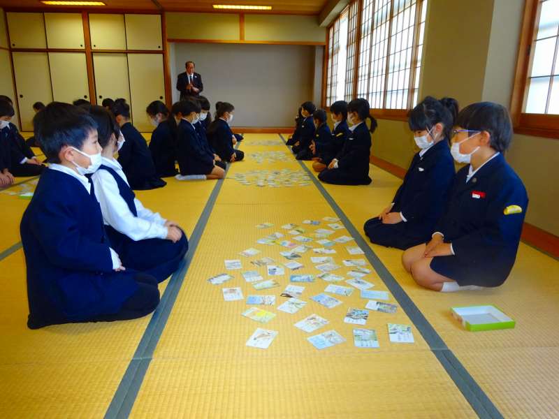 第2回俳句カルタ大会が行われました。まずは、みんなでカルタを準備しました。どこにどんなカルタがあるかを見つめながら、校長先生の札を読む声を待ちます。どの子も「前回よりたくさん取るぞ」と意気込んでいました。