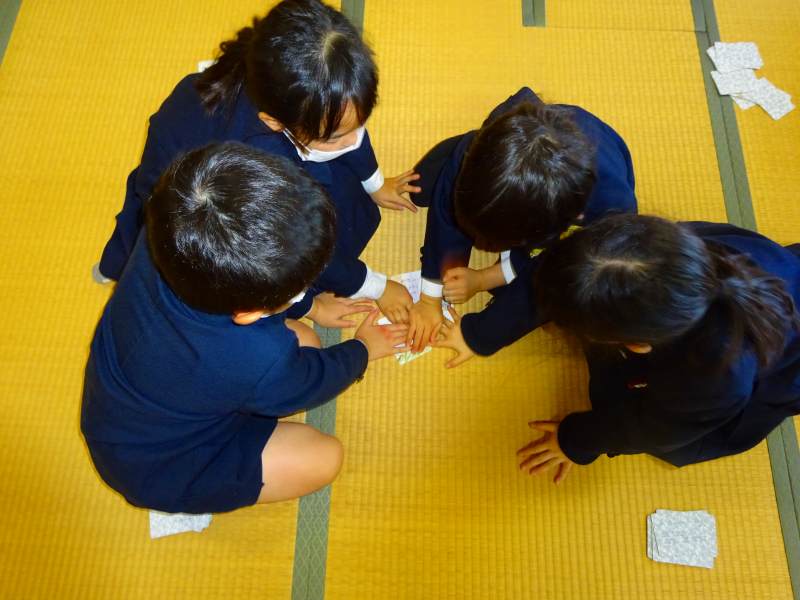 2回目は1回目に比べ、カルタを取るのが速くなりました。「前回よりたくさん取れた。」「最初の5文字で絵札が分かったよ。」と上達している様子がよく分かりました。