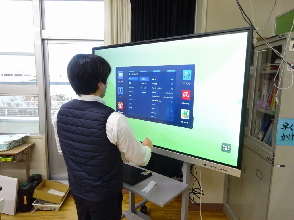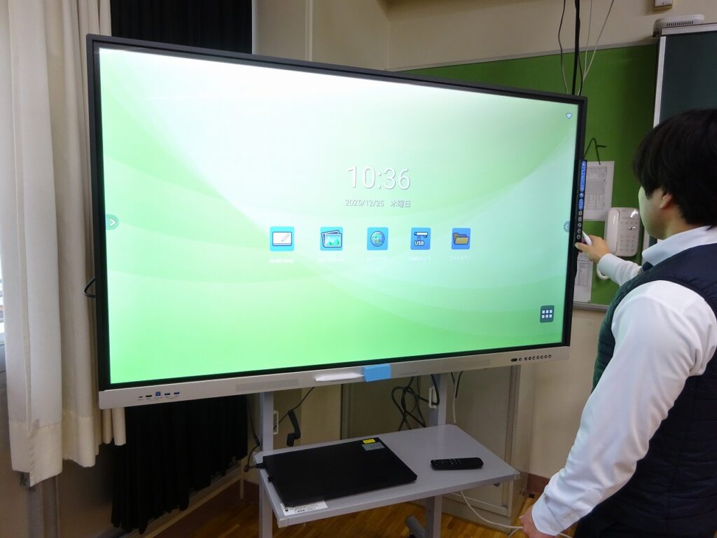今回は、教室に設置してある電子黒板が、設置してから約10年経っており、経年劣化により様々な不具合が出てきたので、この度、新しい電子黒板を搬入しました。