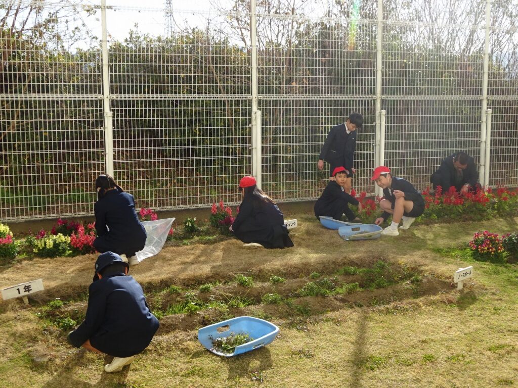 本校では、美化、給食、栽培、体育、図書、放送、保健の7つの委員会があり、5年生と6年生が活動しています。寒さが厳しくなってきましたが、子どもたち一人一人が自分の仕事を積極的に行っていました。
