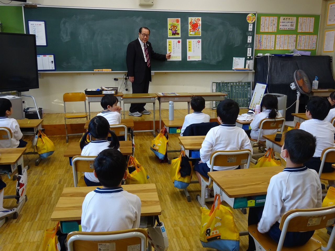 校長先生との四字熟語の学習が始まりました。1学期は「ことわざ」、2学期は「俳句学習」でした。それに続いての言葉の学習です。今回は生き物の絵が描かれたカルタとなっています。生き物が四字熟語の意味を表していて、とても楽しいカルタです。