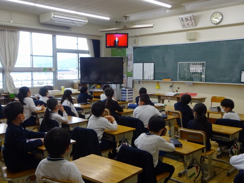 先週から一味会の練習が本格的に始まっています。それに伴い、体育館に楽器や英語劇の道具などを置いているため、今週の朝会はテレビ朝会となりました。