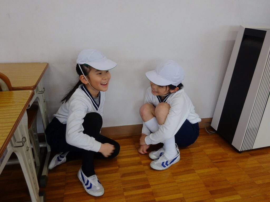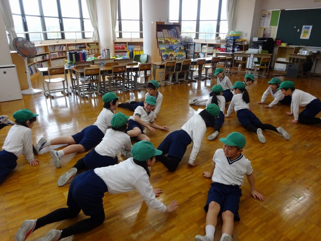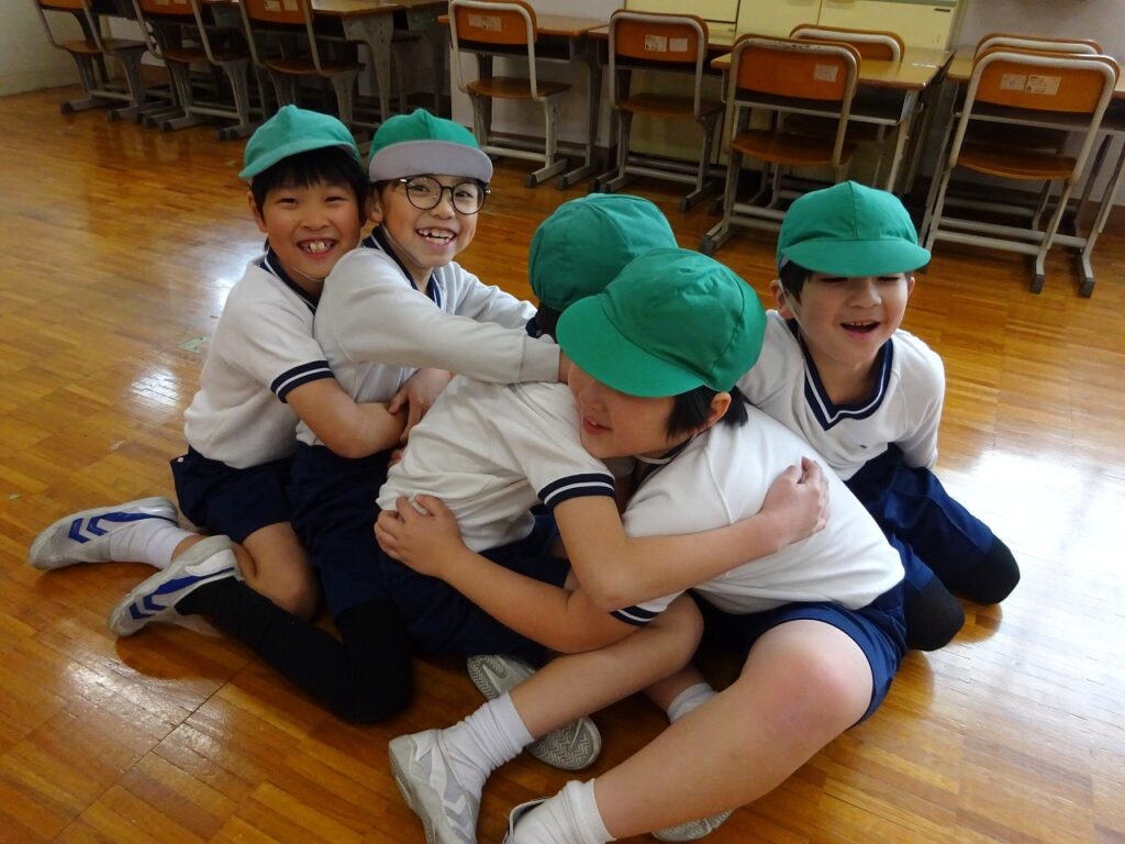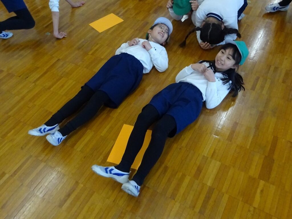 本日の体育では、自分たちが考えてきた好きないきものになりきりました。カマキリやコアラなどの様々ないきものになりきりました。帽子の色を白に変えて白い壁にぴったりとはりつき、カメレオンになりきっている子もいて、いきものの特徴を上手に捉えて表現することができていました。