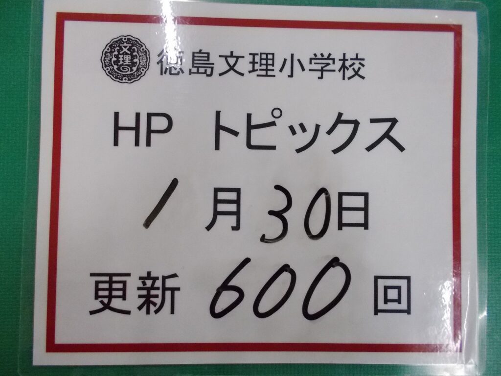 そうした中、本日、今年度600回目のトピックス更新ができました。 このホームページもたくさんの方々にご覧いただいており、改めて本校のホームページの在り方や存在意義などが確認できる機会となり、より一層の励みとなっております。