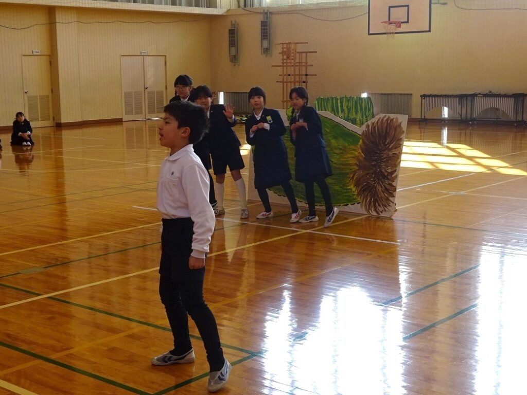 4年生は英語劇の練習です。発音や声の大きさ、身ぶり手ぶり、立ち位置などを一つずつ確認し、完成度を高めています。