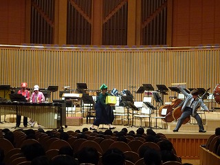 その後に演奏に使われている楽器の紹介がありました。それぞれの楽器を持ち、子どもたちになじみ深いキャラクターに扮して、寸劇と演奏を交えながら紹介をしてくださいました。自分たちが普段よく耳にする音楽が演奏されるたび、子どもたちは大興奮でした。