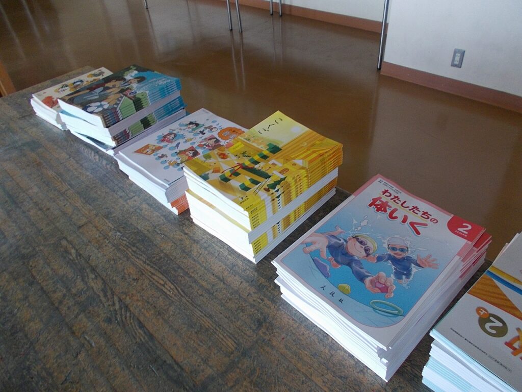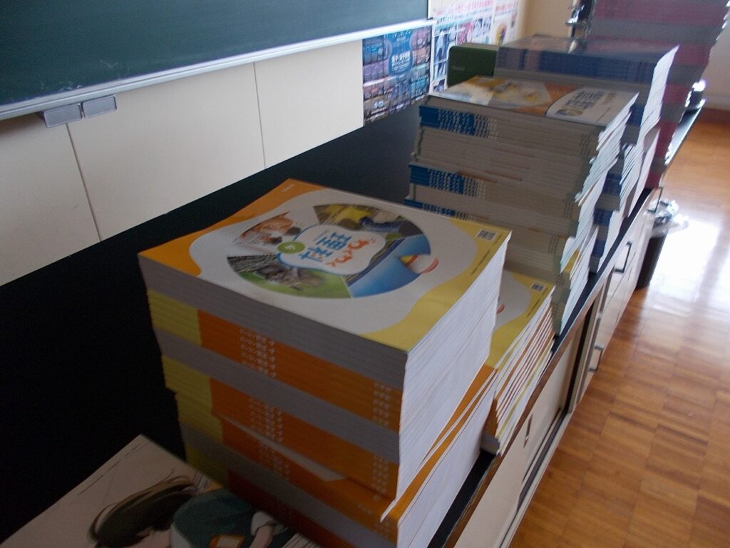 教室では、搬入された教科書に乱丁がないか一冊ずつ確認して配布の準備を整えたり、掲示物などの環境づくりを行ったりしています。
