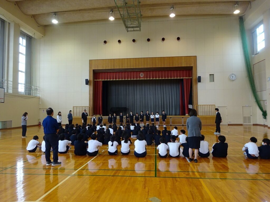 今年度1回目の集まりです。子どもたちの自主活動として、3年生以上の有志の係の子が、バスの中のお世話をします。