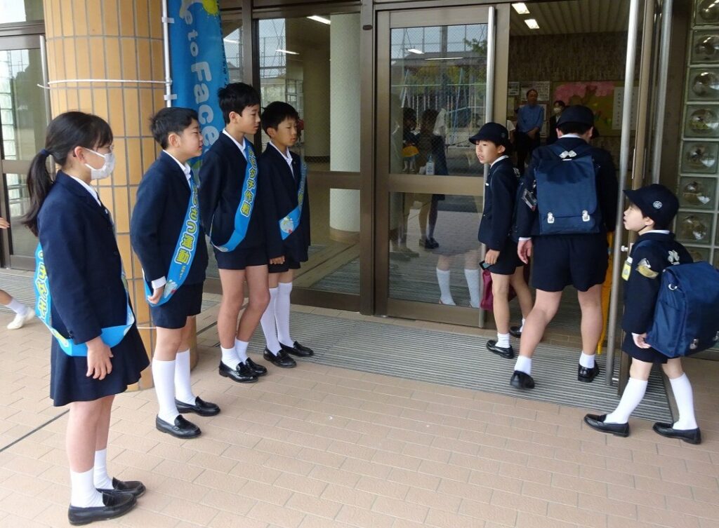 登校してくる児童一人ひとりに元気よく「おはようございます!」とあいさつをしていました。あいさつを受けた子どもたちはいつも以上の笑顔で校舎の中へ入っていきました。